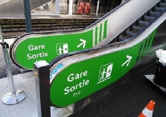 • Panneau de signalétique directionnelle en Dibond prélaqué blanc de 1 mètre x 0.70 mètre avec un décor en adhésif. Fixation à plat sur le mur.